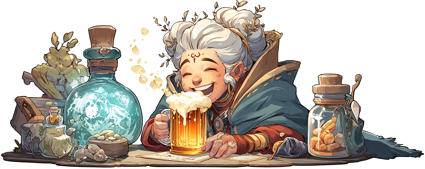 Welcome to Ingrid’s Hall of Enchanted Wares and Steaming Brews, where old magicks and hearth-bound wisdom meet beneath a smoke-darkened roof. Behind the counter stands Ingrid. Browse her trove of wondercraft—steel kissed by runes, charms heavy with fate—and should you trade silver for spellwork, she’ll pour you a steaming horn of Dragon’s Breath Delight, a draught strong enough to wake the bones of giants and warm a frost-bitten soul.