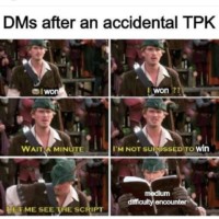My best innovation, though was the “fake pit” trap. The party was going down the hall, and they found a 10′ pit in front of them. They got a running jump…successfully vaulted over the illusionary pit, and land in a real pit covered by a floor illusion. Contrived? Yes, but it was really funny.